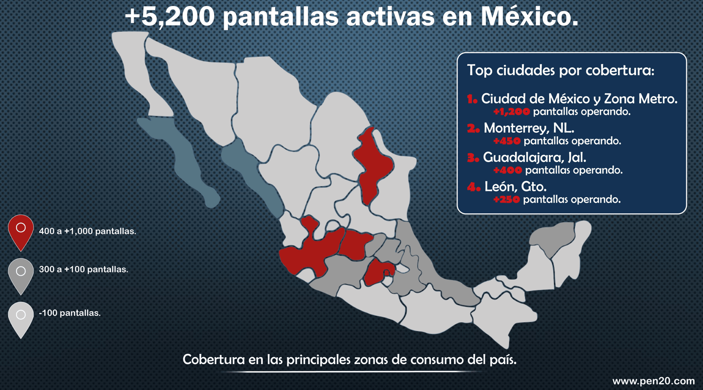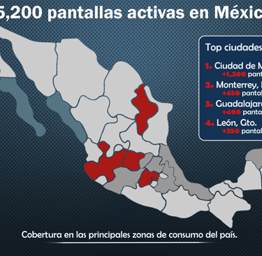 +5,200 pantallas digitales en tiendas, farmacias y papelerías en todo el país.
