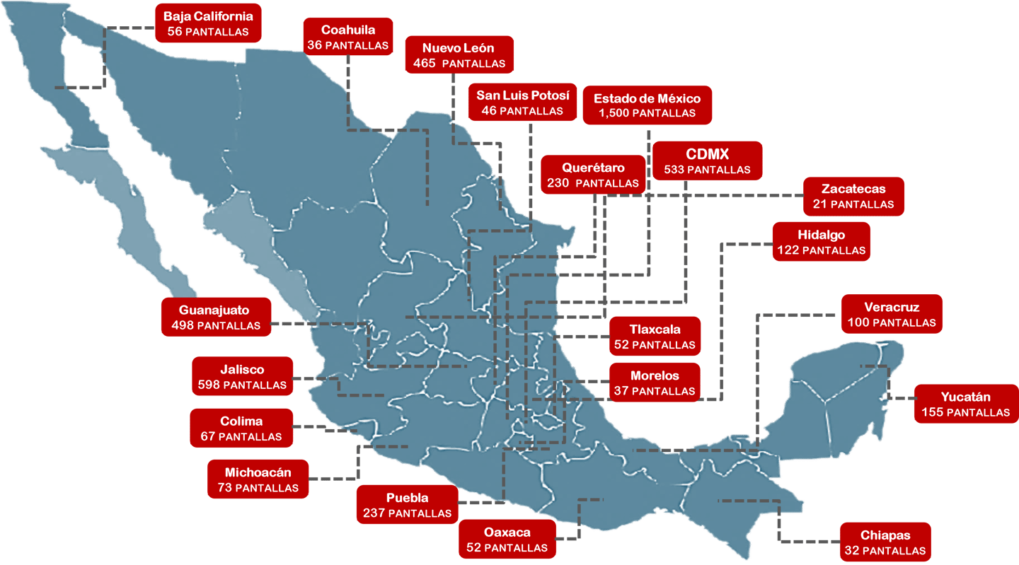 +5,200 pantallas digitales en tiendas, farmacias y papelerías en todo el país.